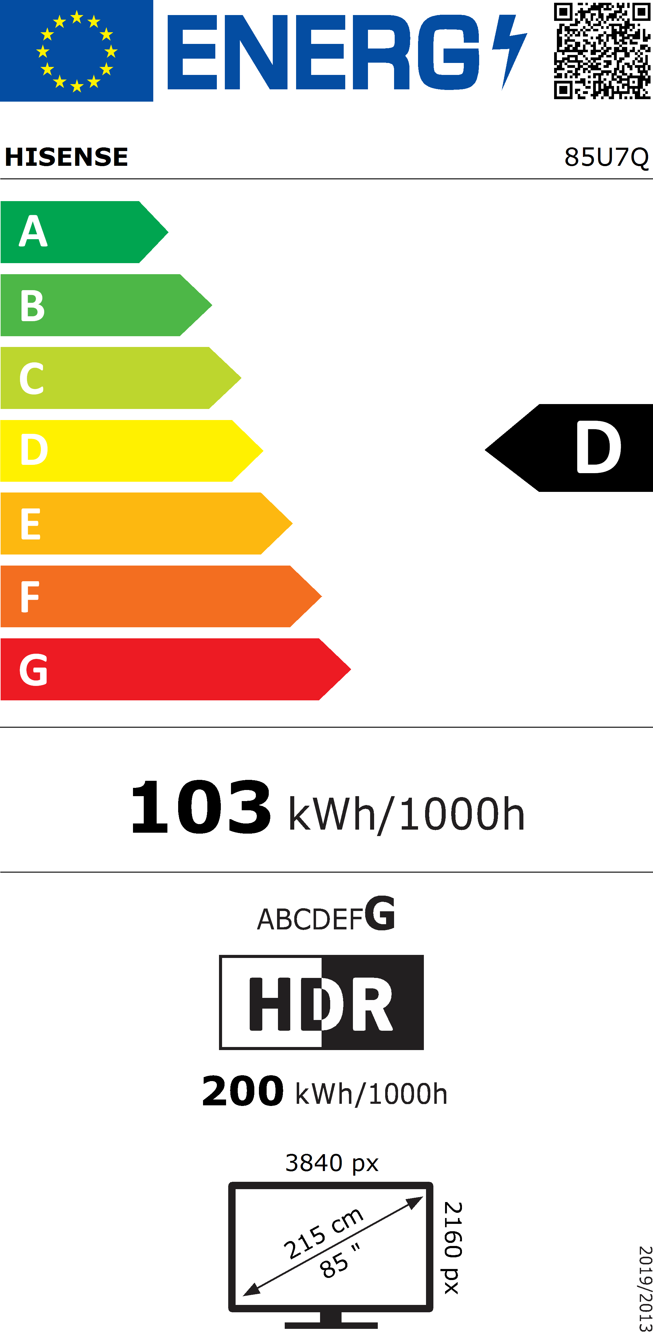 | Classe di efficienza energetica (HDR) | G |